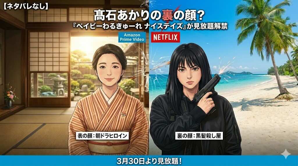 朝ドラ『ばけばけ』ヒロイン髙石あかりの裏の顔!映画『ベイビーわるきゅーれ ナイスデイズ』がアマプラ&ネトフリで見放題解禁。作品情報から圧倒的アクションとゆるい日常のギャップまでネタバレなしで紹介!Audibleとは?サービスの全体像と料金・活用法を徹底解説!