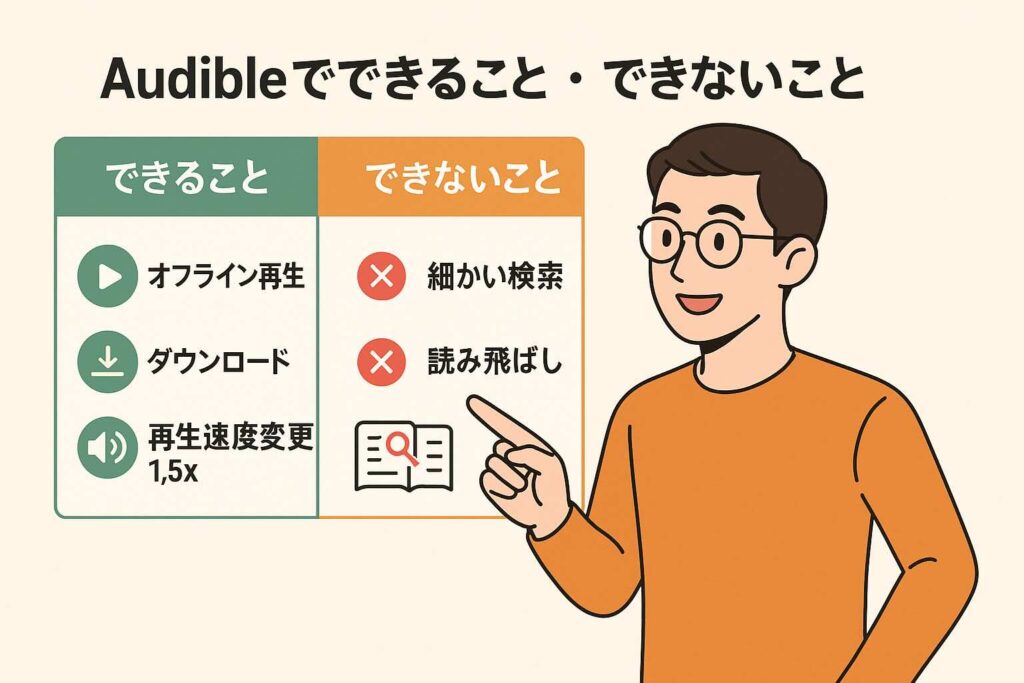 Audibleは「耳で本を楽しめるサービス」ですが、すべてのニーズを満たすわけではありません。